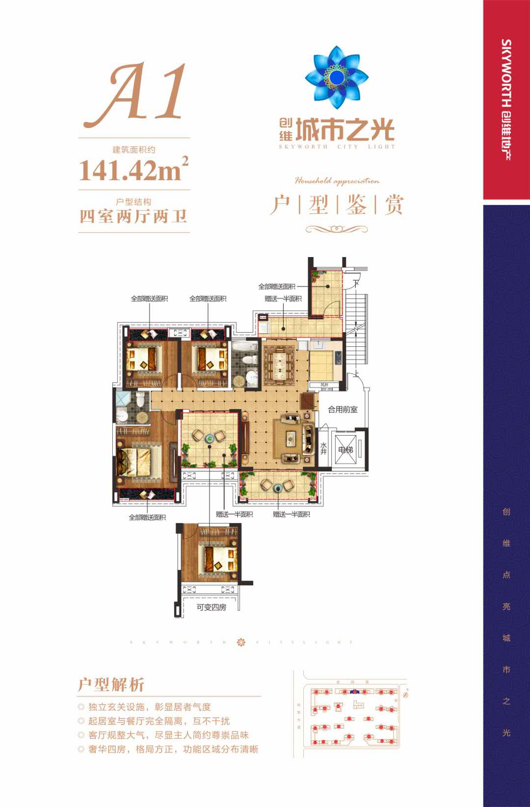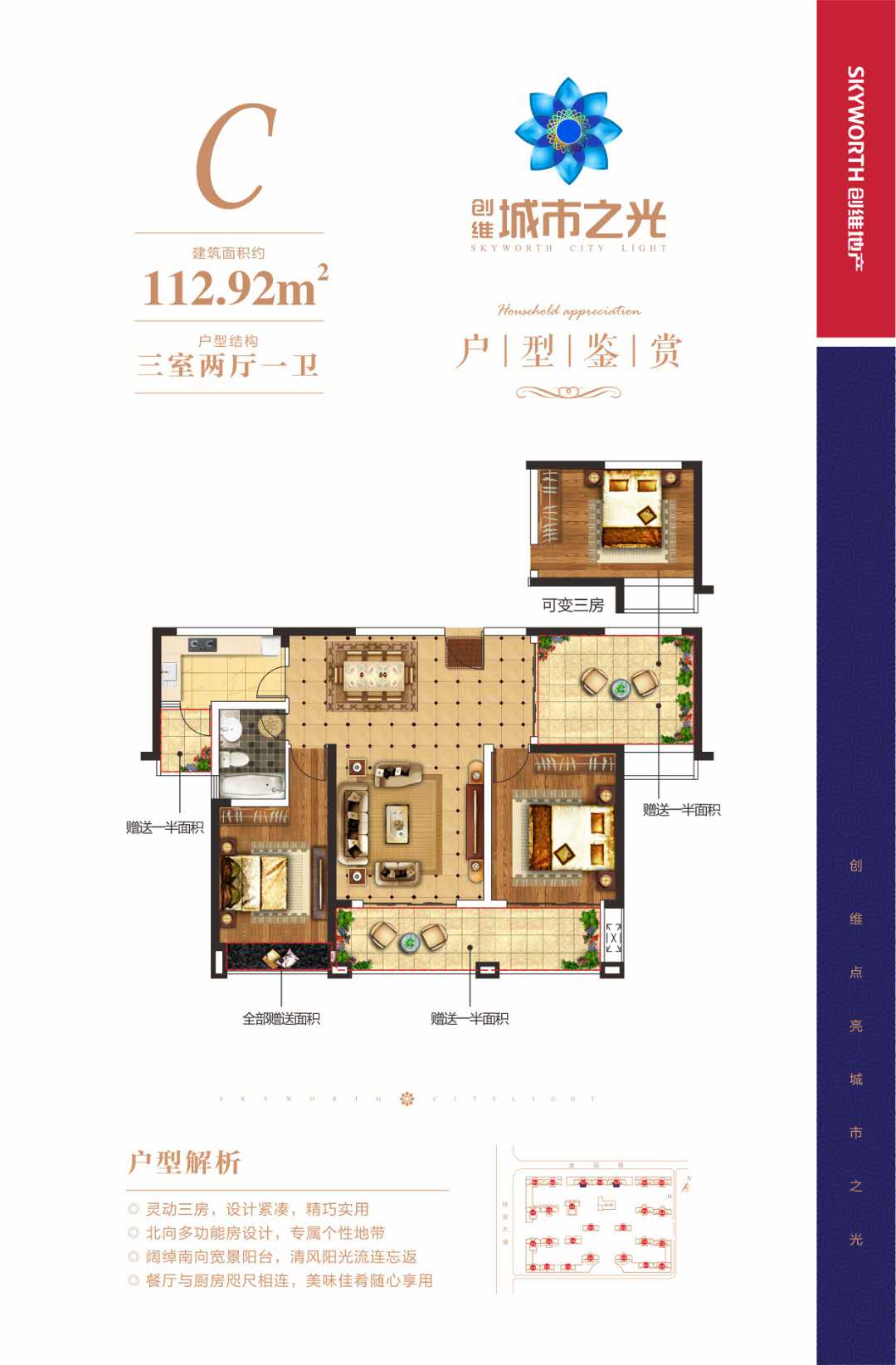 创维城市之光位于宜春市经济技术开发区,西临经发大道,南接春风路,东靠宜居大道,北连金园路,毗邻 生活圈, 沪昆高速,周边 经开区管委会、市民广场和超大人工湖,北师大经都 、幼儿园等 资源环伺,是宜春市未来十年发展的高尚人居福地。 创维城市之光项目由宜春创维置业 开发,总占地面积约100亩,极富国际感的Art-deco建筑风格,绿化率达40%以上,南北通透,户户赠送,小区人车分流,停车位比达1:1,通过移动网络打造智能化的社区。